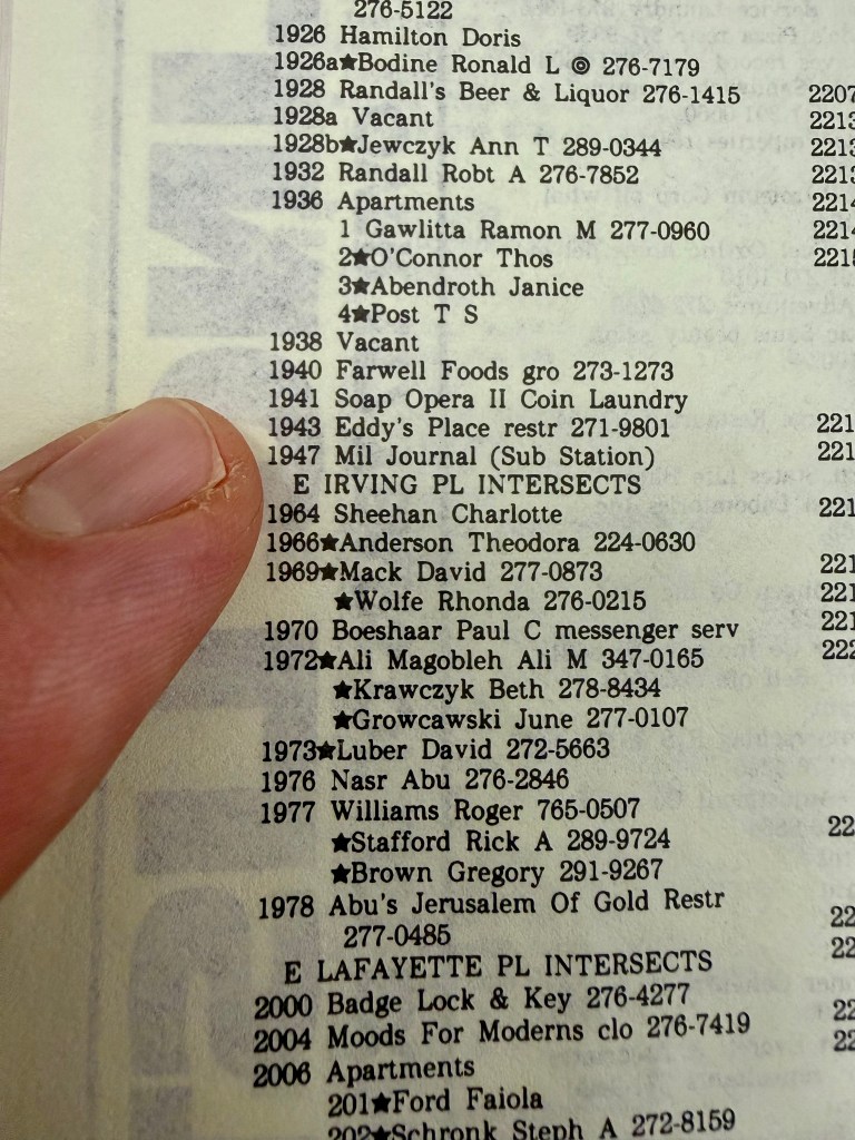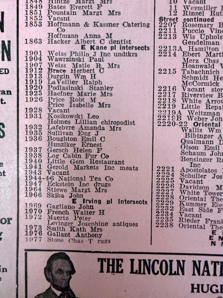 Here are photos of the directories. We can see the change of street numbers and the disappearance of whole structures.