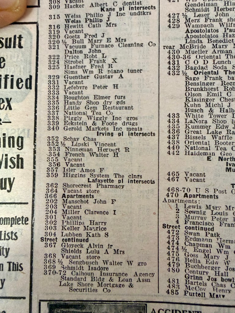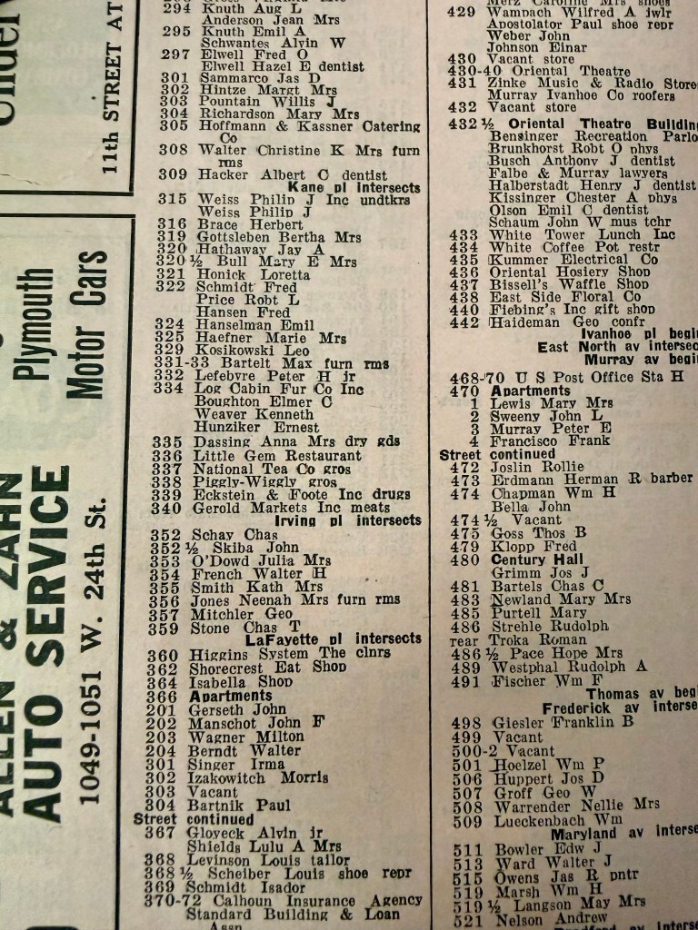 In Milwaukee City directories we follow the buildings’ evolution from multiple businesses to one.